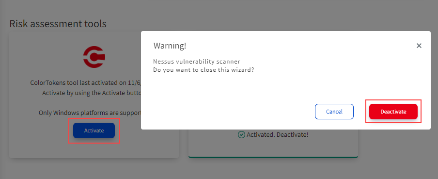 Activate the ColorTokens vulnerability scanner when you want to switch from the Nessus scanner. It may take a few minutes for the ColorTokens vulnerability scanner to report the vulnerabilities data for the assets.